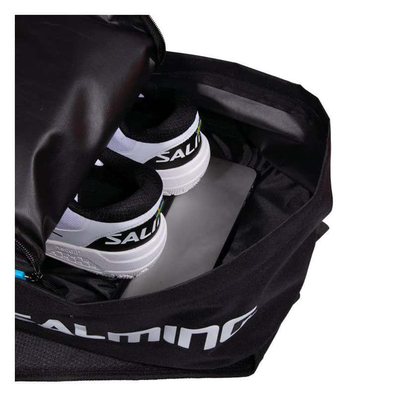 Der Salming Rucksack SR sorgt mit seinen verstellbaren und leicht gepolsterten Schultergurten für ein angenehmes Tragegefühl. Außerdem verfügt er über einen stabilen Tragegriff an der Oberseite, der das Anheben und Manövrieren erleichtert.
