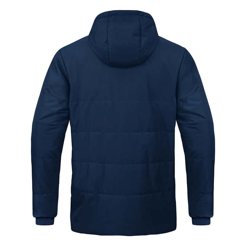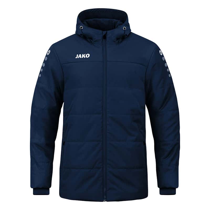 Wasserabweisendes Obermaterial, wärmeisolierende Wattierung und weiches Fleece an der Innenseite machen die JAKO Coachjacke Team zur optimalen Ausstattung bei kühleren Temperaturen. Bei widrigem Wetter kannst Du die im Kragen intergierte Kapuze tragen. Des Weiteren schützen integrierte Ripp-Bündchen in den Ärmeln, dem Kordelzug und den Stoppern sowie an der Kapuze vor dem Eindringen von Wind und Regen. So garantiert die Jacke optimalen Tragekonform.