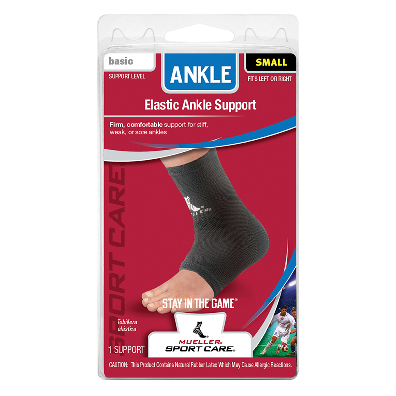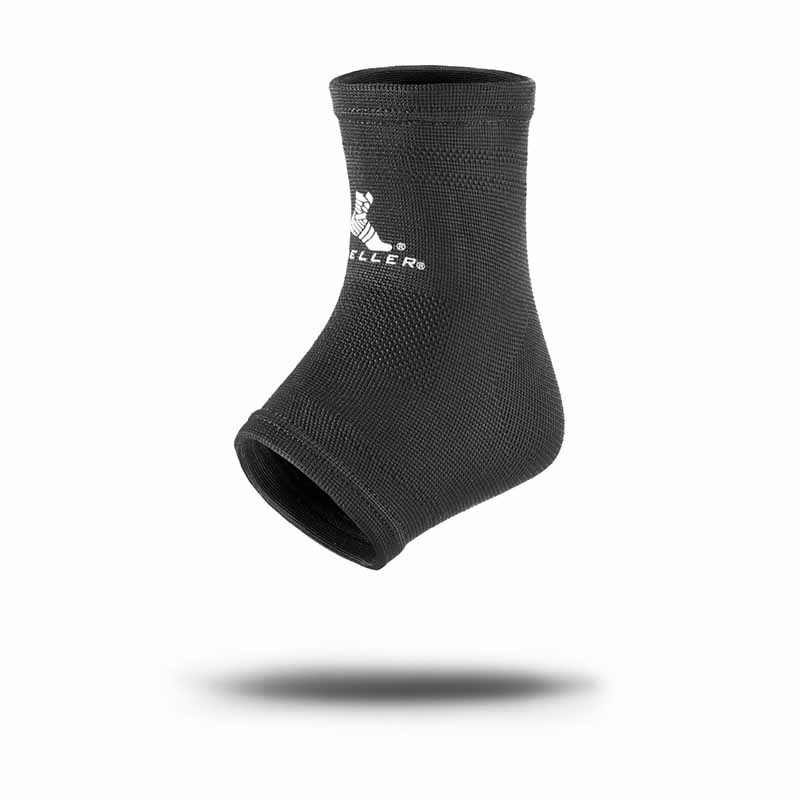 Elastische Sprunggelenkbandage. Der spezielle Obersaum verhindert ein Einrollen der Bandage.