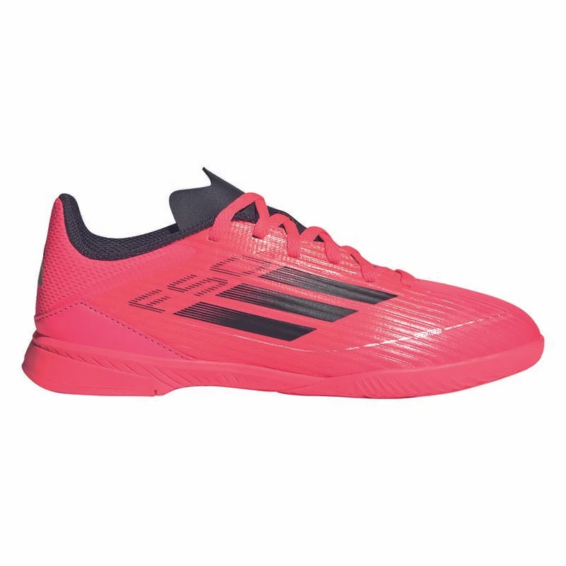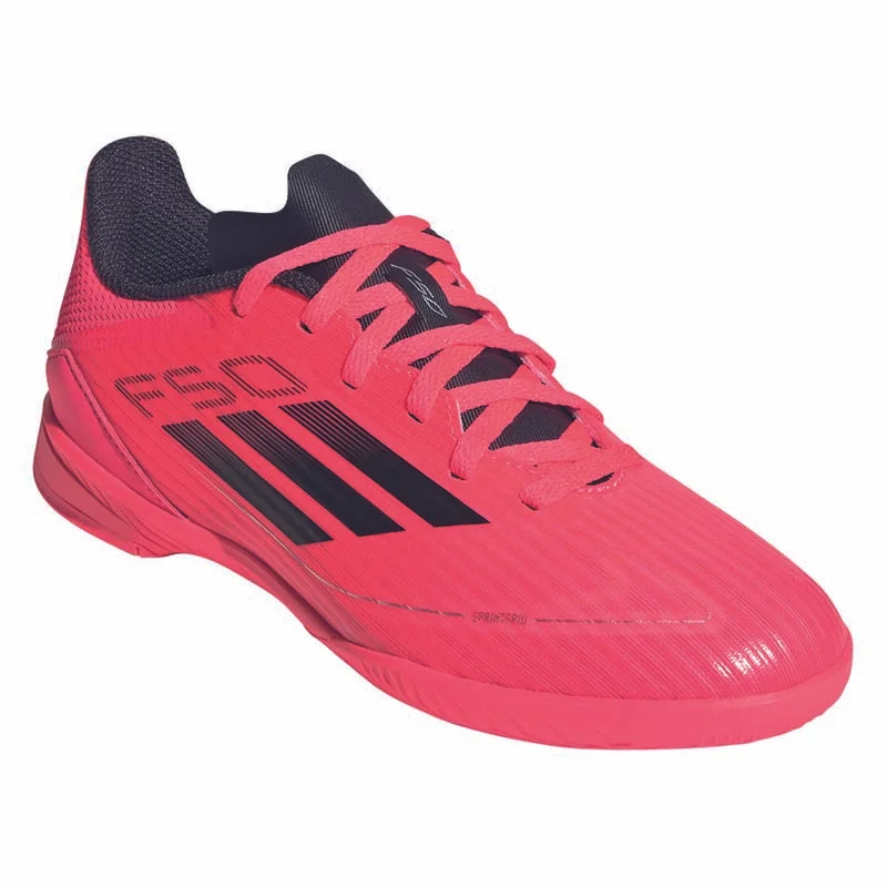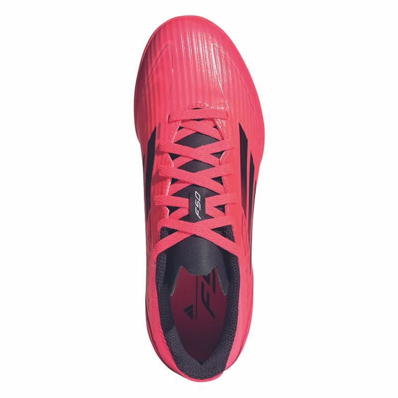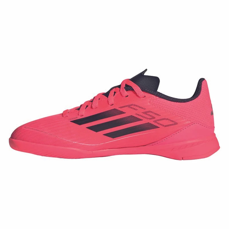 Free the fast! Für ultimative Beschleunigung und rasante Moves designt, entfesselst du mit dem adidas F50 dein volles Speed-Potenzial. Ausgestattet mit einer perforierten Zunge für optimale Luftkühlung und dem Fiberskin Obermaterial mit Sprintgrid Print im Vorfußbereich, unterstützt dieser adidas League Fußballschuh für Kinder und Teens deinen Fuß optimal bei Highspeed-Dribblings und spielentscheidenden Sprints. Außerdem sorgen die EVA-Zwischensohle und die griffige Gummiaußensohle für Komfort und Reaktionsfreudigkeit auf Hallenböden.