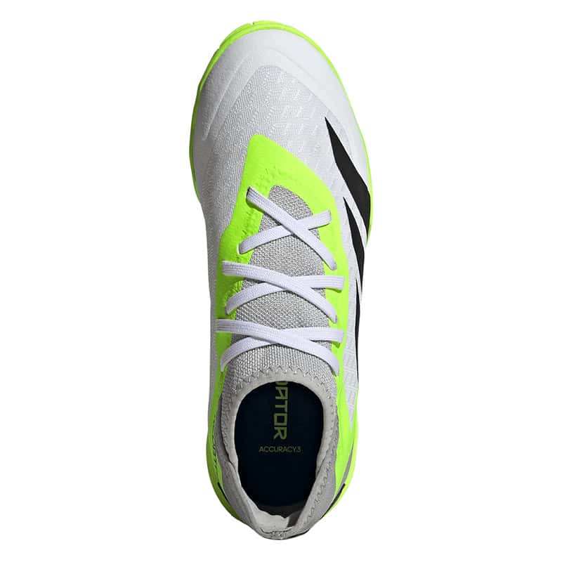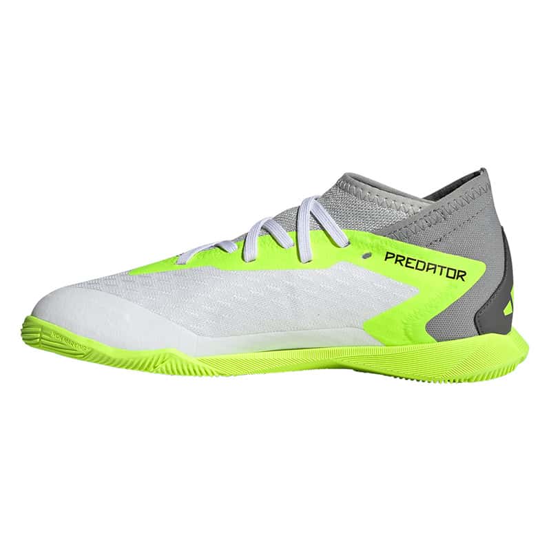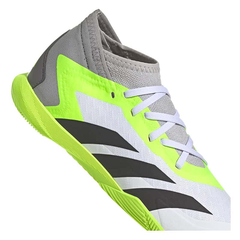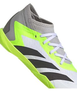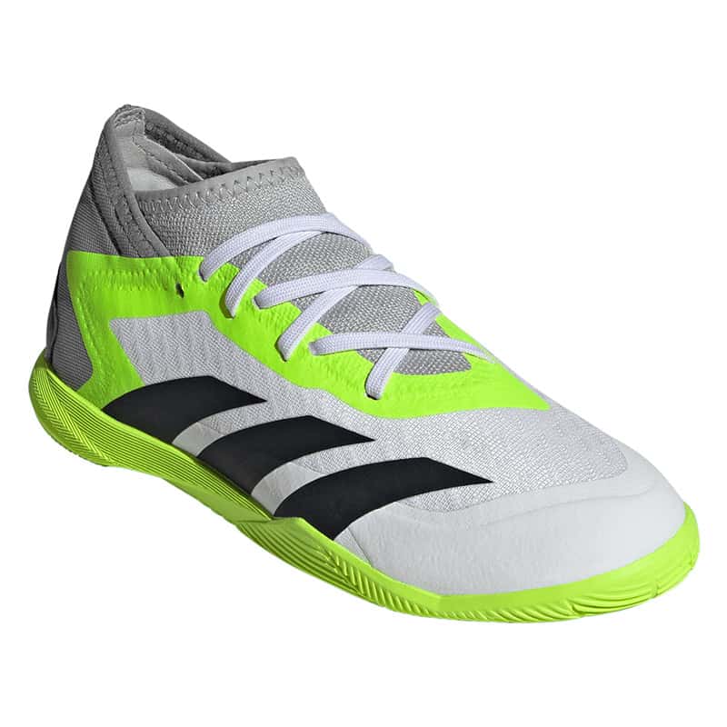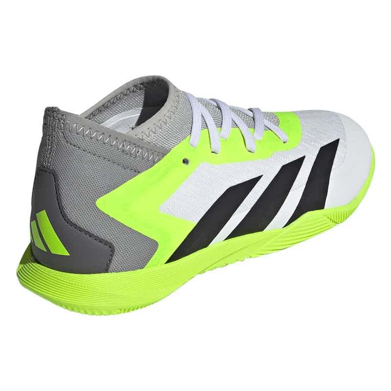 Egal, ob oberes Eck oder unteres Eck – mit dem adidas Predator Accuracy schließt du vor dem Tor eiskalt ab und beförderst den Ball ins Netz. Mach den gegnerischen Strafraum zu deiner Bühne und wow alle mit deinen Skills. Dieser Fußballschuh für Kinder und Teens kommt mit einem Vorfußbereich aus atmungsaktivem Mesh und sorgt so für ein bequemes Tragegefühl beim Kicken. Außerdem garantiert die abriebfeste Non Marking Gummiaußensohle optimalen Grip auf Hallenböden.