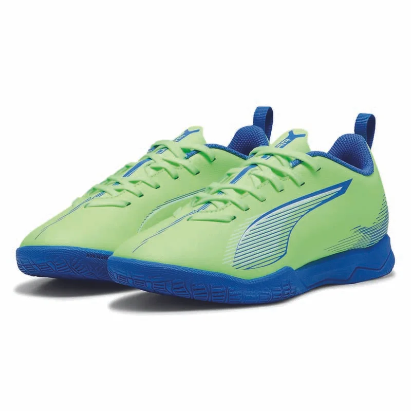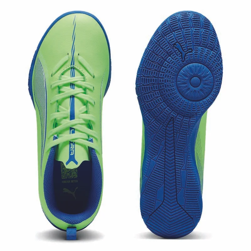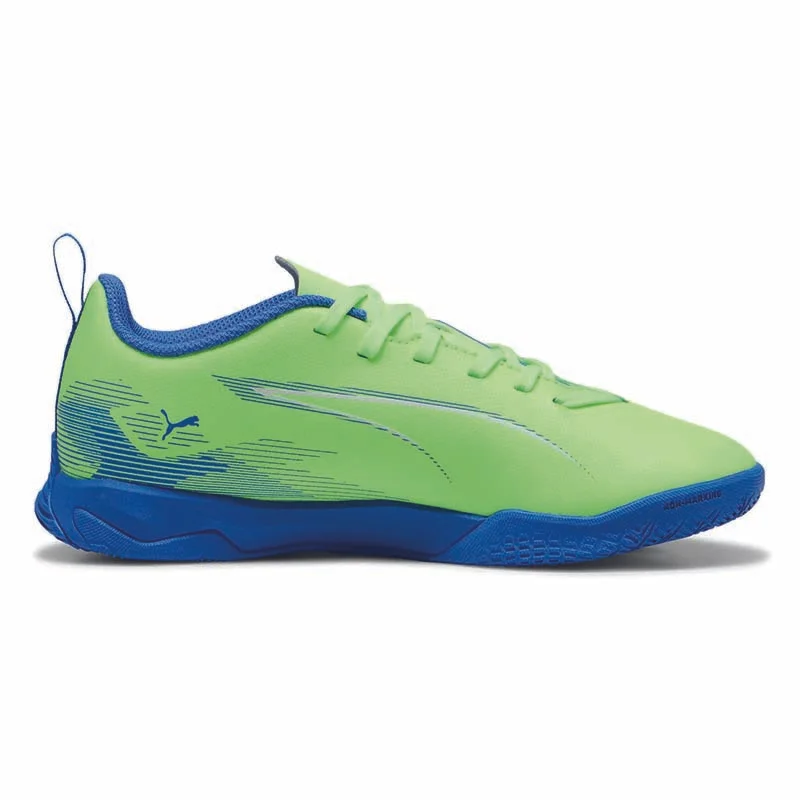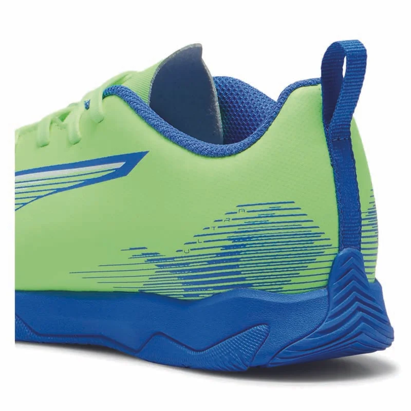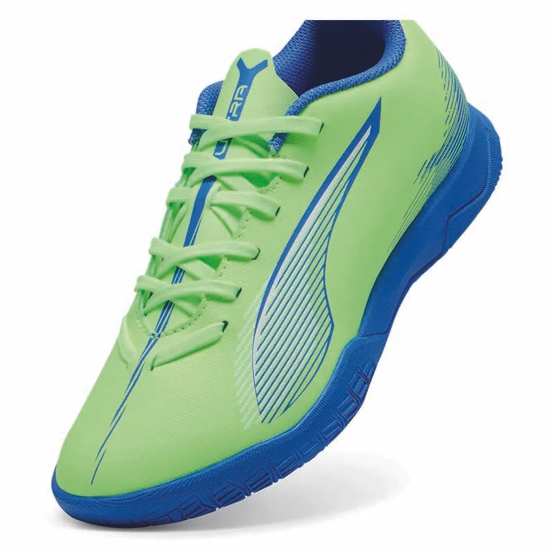 Wie schnell ist dieses ULTRA 5? Schnallen Sie sich an. Der leichte Stützrahmen verleiht dem Obermaterial Stabilität, während die flache, nicht abfärbende Gummilaufsohle schnellen Fussball in die Halle bringt.