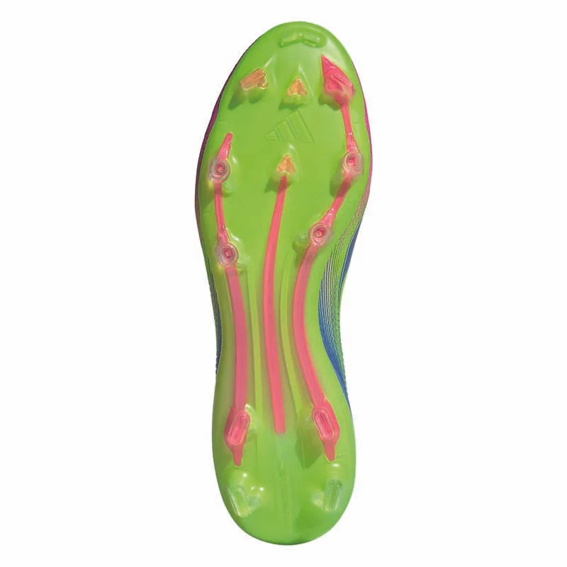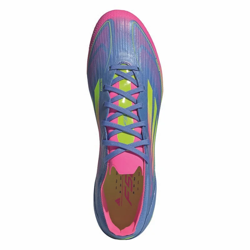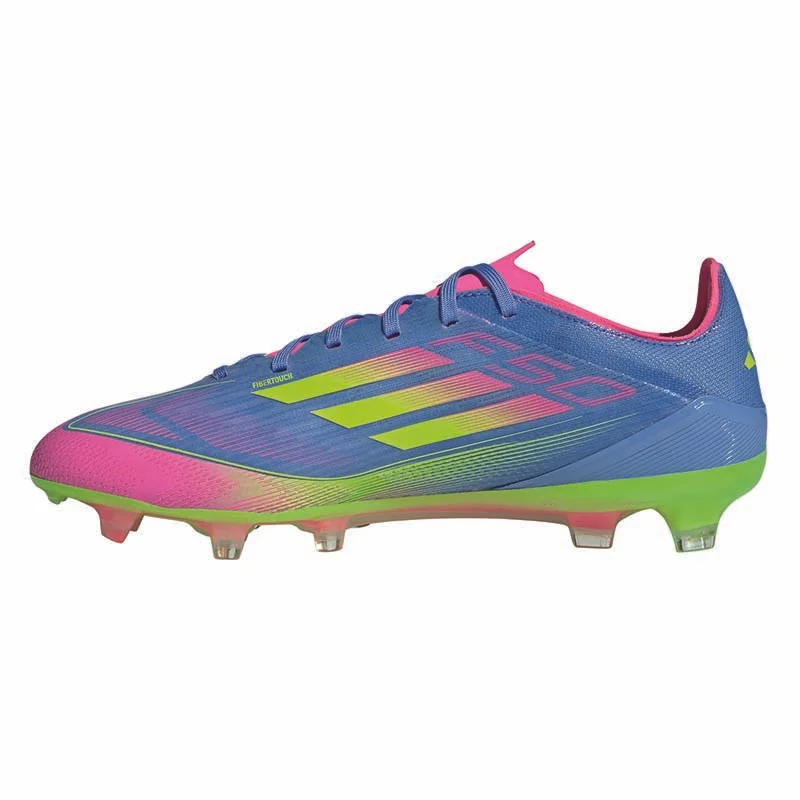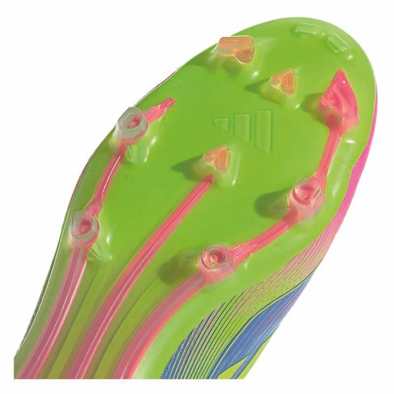 Durch und durch auf Speed getunt – mit diesem leichten adidas F50 pushst du das gegnerische Team ans Limit. Ausgestattet mit dem Fibertouch Obermaterial ermöglicht diese leichte adidas Pro Version mit der Sprintweb 3D-Struktur gekonnte Highspeed-Dribblings. Und die Tunnel-Zunge mit Kompressionspassform stellt sicher, dass er bei temporeicher Action auf dem Spielfeld immer sicher am Fuss sitzt. Die Sprintshell 360 Aussensohle wurde für blitzschnelle Moves auf festen Böden optimiert.