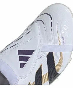 Mit dem adidas Predator erzielst du einen Abschluss nach dem anderen. Bei dieser Version für Kinder und Teens, kommt das Hybridfeel Obermaterial mit einer Allover-3D-Struktur, einer umschlagbaren Zunge und griffigen Strikescale Gummilamellen für überragende Ballkontrolle. Und seine Controlplate Aussensohle sorgt für Top-Performance auf festen Böden und Kunstrasen.
