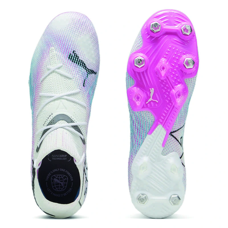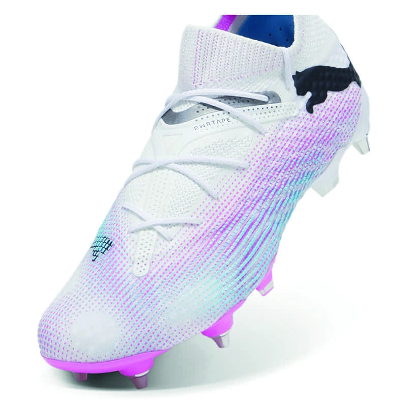 Spielmacher, hol dir die FUTURE. Das überarbeitete Obermaterial kombiniert PWRPRINT, PWRTAPE, extra dehnbares Gestrick und weiches Dual-Mesh für eine adaptive Passform der nächsten Generation, damit du 90 Minuten lang ohne Einschränkungen spielen kannst.