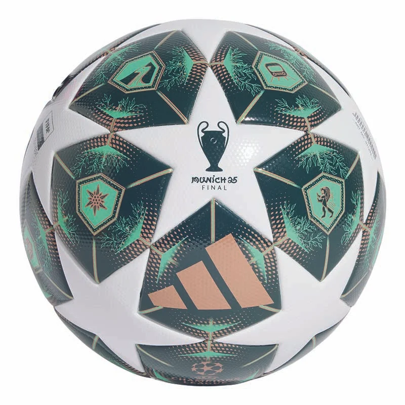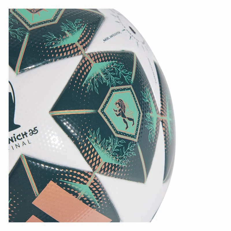 Der offizielle UCL Spielball ist eine Hommage an München. Von seinem Design inspiriert, greift auch dieser adidas League Fussball den pittoresken Flair der Stadt und die patinierten Kupferkuppeln ihrer Sehenswürdigkeiten mit verschiedenen Grüntönen auf. Die nahtlose TPU-Oberfläche ermöglicht eine berechenbare Performance und zeigt detaillierte Stadtsymbole sowie das Logo des Turniers. Der Ball entspricht ausserdem dem FIFA Quality Standard und ist ideal für Training und Match.