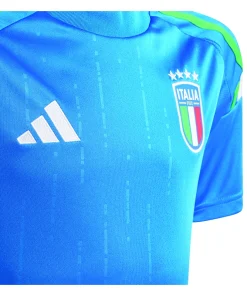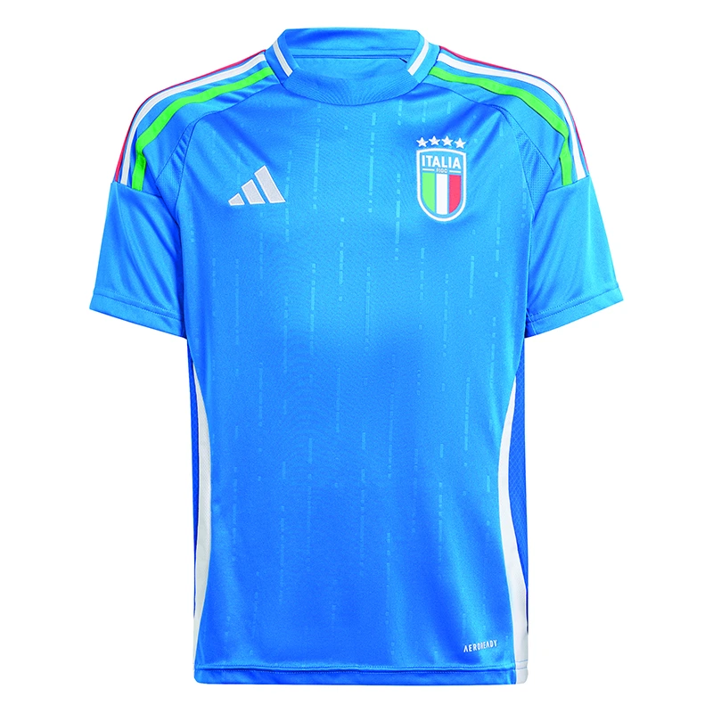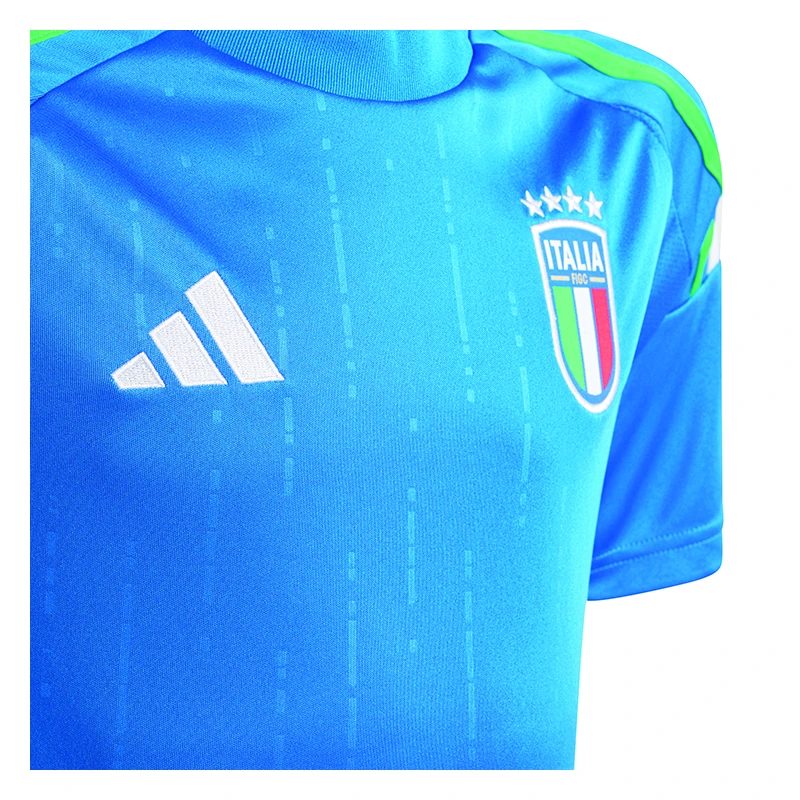 Sie sind berühmt dafür, in Blau zu spielen, aber ihre Nationalflagge weht in Grün, Weiß und Rot. Dieses adidas Italien Heimtrikot für Junioren zeigt die berühmten Farben der Tricolore auf seinen 3-Streifen und sorgt so für den größten Nationalstolz. Dieses Trikot wurde für Fans entwickelt und besteht aus weichem Material und feuchtigkeitsregulierendem AEROREADY. Ein gewebtes Abzeichen auf der Brust verleiht dem Trikot einen letzten Hauch von Fußballbegeisterung.