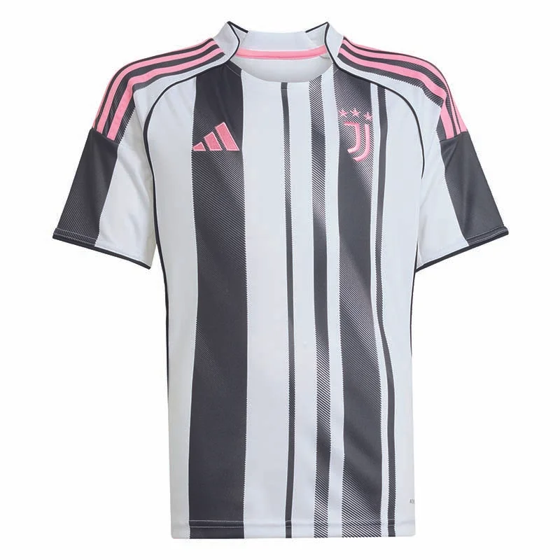 Fussballtradition trifft auf einen modernen Vibe. Dieses adidas Juventus Turin Heimtrikot kommt mit den berühmten Streifen des Vereins und sorgt so für einen Eyecatcher. In dieser Version für Kinder und Teens garantieren weiche Interlockmaterial und die feuchtigkeitsabsorbierende AEROREADY Technologie jungen Fans ein angenehm trockenes Tragegefühl. Das aufgestickte Vereinslogo in zeitlosem Rosa zeigt ausserdem deine Fanliebe.