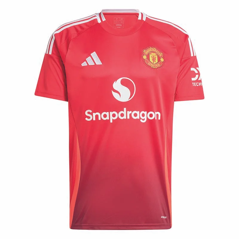 Selbst die gegnerischen Fans können nicht bestreiten, dass die Atmosphäre bei Manchester United im Old Trafford Stadium unvergleichlich ist. In der Saison 24/25 präsentieren sich die Profis in zeitlosen Heimtrikots mit leuchtend roten Einsätzen an den Seiten und einem dezenten Farbverlauf auf der Vorder- und Rückseite. Dieses adidas Fußballshirt ist für Fans designt und kommt mit feuchtigkeitsabsorbierender AEROREADY Technologie und einem aufgestickten Vereinslogo. Dieses Produkt ist mit 100 % recycelten Materialien hergestellt. Die Wiederverwendung bereits vorhandener Materialien hilft uns dabei, Müll zu reduzieren, unsere Abhängigkeit von nicht erneuerbaren Ressourcen einzuschränken und den CO2-Fußabdruck unserer Produkte zu verringern.