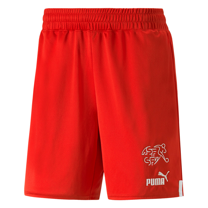 Zeige dich auf dem Spielfeld und spiele wie ein Starspieler der Schweizer Mannschaft mit diesen Replika-Shorts. Sie bestehen aus schweißableitendem Material, um dich in den angespanntesten Momenten des Spiels kühl zu halten, und zeigen das berühmte Wappen des Teams auf dem Bein. Hopp Schwiiz!