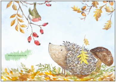 Igel und Rotkehlchen im Herbst – Taurus Kunstkarten