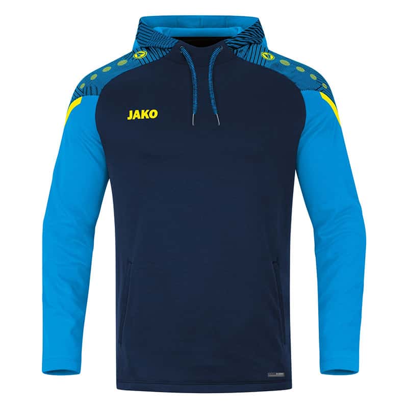 Nachhaltiges Kapuzensweat mit weicher Fleece-Innenseite Das JAKO Kapuzensweat Performance besteht zu 100 % aus recyceltem Polyester. Der Body besitzt eine weiche Fleece-Innenseite. Die typischen Design-Elemente aus Jacquard der Teamline Performance befinden sich im Schultereinsatz und in der Kapuze. Weitere Highlights des nachhaltigen Kapuzensweats sind die Kontraststreifen an den Schultern, die Kontrastkordeln und die Seitentaschen. Die Kindergrößen sind nicht mit Kordeln versehen.