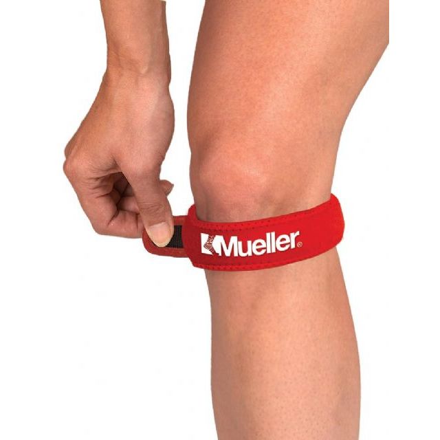 Der Kniegurt «Jumpers Kneestrap» von MUELLER besitzt eine röhrenförmige Einlage, die einen genauen und stufenlos verstellbaren Druck auf die Sehne unterhalb der Kniescheibe ausübt. So erreicht man eine Dehnung des Muskels.