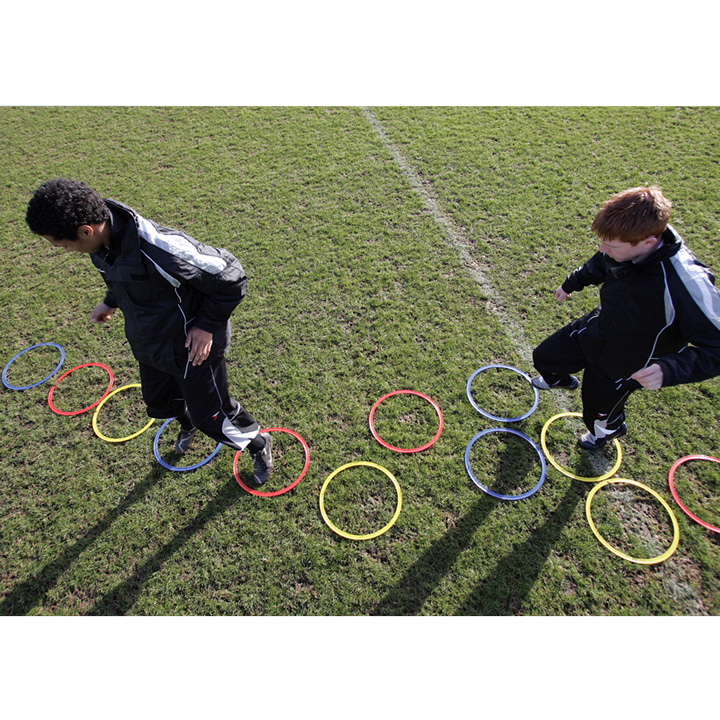 Entwickelt für das Training von ‹Speed›, ‹Fussarbeit› und ‹Koordination›: Lieferumfang: – 12 Ringe (4xrot, 4xgelb, 4xblau) – 1 Tasche