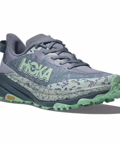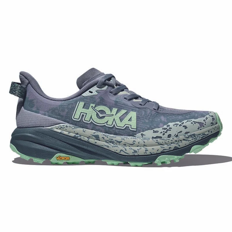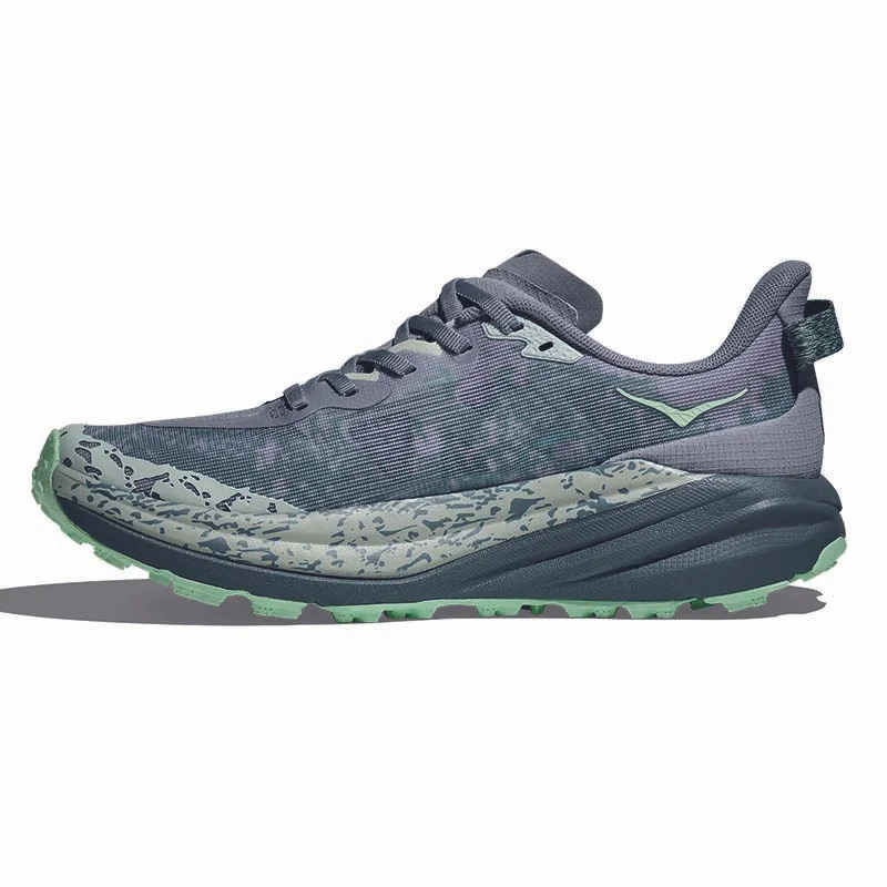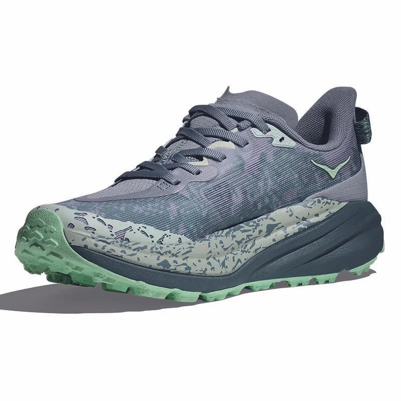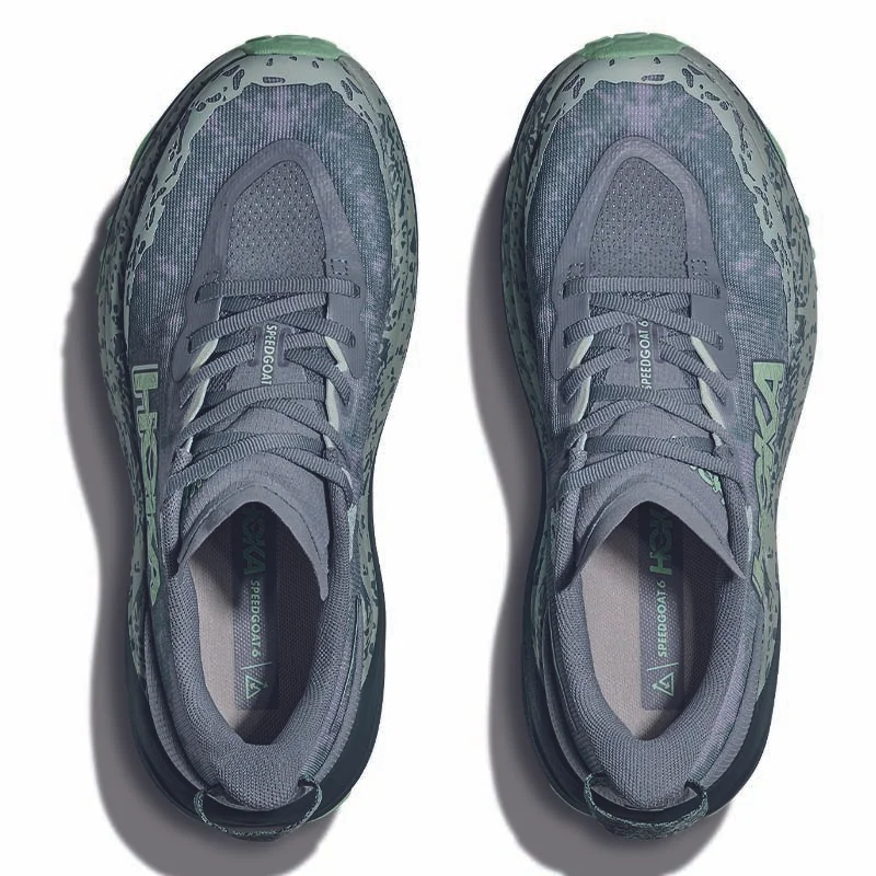 Reaktionsfähiges Laufgefühl mit gutem Halt auf anspruchsvollem Terrain. Dieser Laufschuh ist einfach einzigartig. Warum? Der Speedgoat 6 vereint die bewährte Dämpfung von HOKA mit ausgezeichnetem Grip und ultraleichten Materialien, was ihn perfekt für anspruchsvolles Gelände macht. Die Neuauflage ist ein richtiges Arbeitstier: Sie bietet ein Obermaterial aus atmungsaktivem Gewebe, ein integriertes „Chassis-System“, das den Fuss umschmiegt, eine noch weichere Lasche mit zwei Zwickeln und eine überarbeitete Ausrichtung der Stollen, die in Anlehnung an den Schuhnamen von den Hufen einer Ziege inspiriert sind.