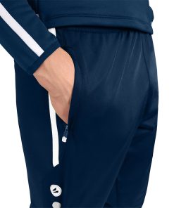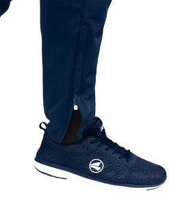 Sie ist mit Seitentaschen samt Reißverschluss ausgestattet. Weitere Zipper befinden sich an den Beinabschlüssen deren Ausstattung mit elastischem Ripp eine optimale Passform garantiert. Der elastische Bund mit Kordelzug lässt sich individuell einstellen und passt sich exakt deinem Körperbau an. Das JAKO Logo, die JAKO Dots und der weiße Einsatz runden das Design ab.