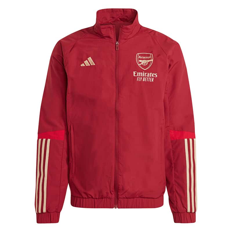 Mit dieser adidas FC Arsenal Jacke zeigst du, dass du ein echter Fan bist. Sie ist schmal geschnitten und hat ein bequemes Mesh-Futter. Außerdem wird sie von den Profis bei Presseterminen und öffentlichen Events getragen. Dank der in die Naht eingearbeiteten Taschen hast du außerdem wichtige Kleinigkeiten immer griffbereit.