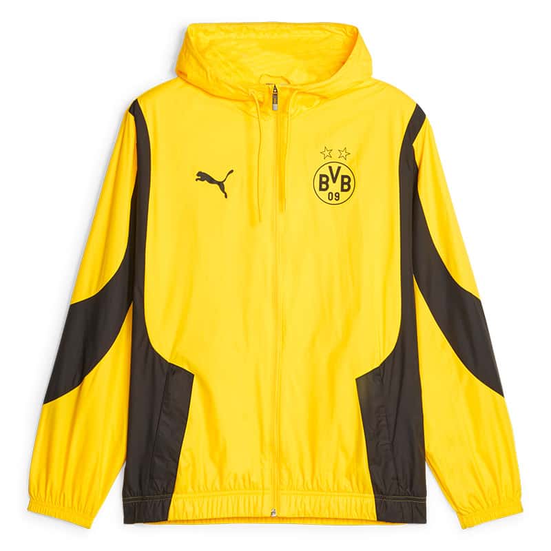 Zeige deine Leidenschaft für die Schwarzgelben in dieser Borussia Dortmund-Jacke. Sie hat eine feuchtigkeitsableitende Materialmischung, die dich auch noch nach dem Anpfiff kühl und trocken hält.