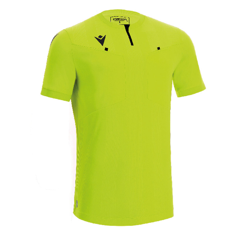 Das offizielle kurzärmlige Schiedsrichter Trikot 2022 von Macron für die Schweiz. Jeder Teil des Trikots besteht aus unterschiedlichem Gewebe, so dass ein vielfältiges Design mit der perfekten Funktionalität entsteht: weiches Jacquard-Gewebe im Nadelstreifenmuster vorn in der Mitte, Softlock an den Ärmeln und den vorderen Taschen, Eco Mikromesh für die Rückseite. Die zwei grossen Vordertaschen haben einen Klettverschluss. Der Halsausschnitt und die Ärmelbündchen sind gerippt. Am Kragen befindet sich ein umgekehrter Nylon-Reissverschluss.