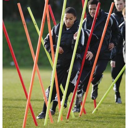 Feste Slalomstangen für Beweglichkeit und Koordination. Die Höhe der Stange «zwingt» den Spieler dazu, dass der gesamte Körper die Bewegungen und Richtungsänderungen geschmeidig mitmacht! Höhe/Stange: 1.70 m Lieferumfang: – 12 Stangen (4xgelb, 4xorange, 4xrot) – 1 Transporttasche