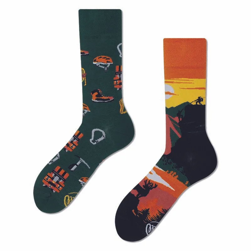Socken für alle, die gerne in den Bergen wandern, aber auch für diejenigen, die gerne kopfüber liegen. Bereit für eine Reise ins Unbekannte?