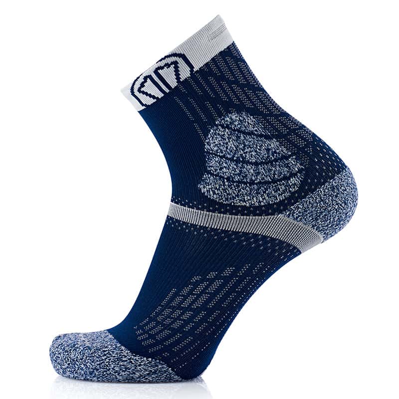 Trailrunning-Socke mit Schutzzonen für Knöchel und Zehen, um den Komfort des Läufers auf Wegen zu gewährleisten.