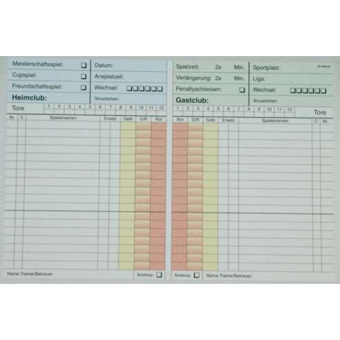 Spielnotizkarten ‹Standard› für Meisterschafts- und Freundschaftsspiele. Ausführung Schweiz. Vorderseite für Spielnotizen. Anzahl Blätter pro Set: 10 Stk. Passend in Mini-Schiedsrichterset.