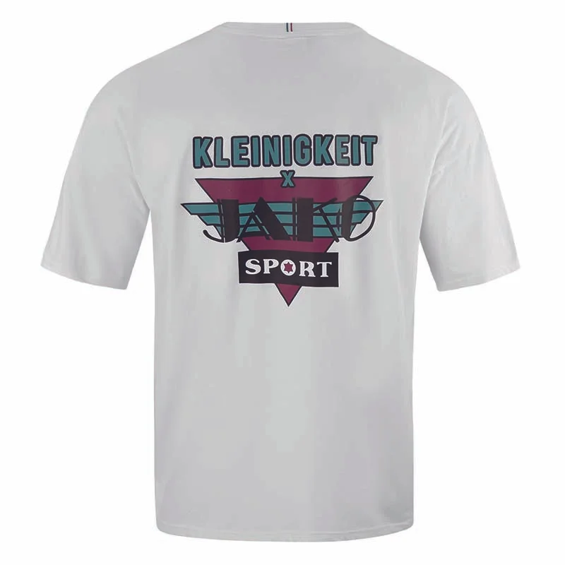 Das retroragende T-Shirt von Kleinigkeit x JAKO bringt deinen Look auf das nächste Level. Mit seinem Oversize Schnitt und dem Rundhals-Rippkragen vereint es modernen Style mit maximalem Tragekomfort. Die Sticklinien im Nacken und der grosse Print auf der Rückseite setzen coole Akzente und machen das Shirt zu einem echten Hingucker. Das Kleinigkeit x JAKO Logo auf der Vorderseite rundet das Design ab und gibt dem Shirt einen sportlichen Retro-Touch. Egal, ob du es im Alltag, beim Sport oder in deiner Freizeit trägst – dieses T-Shirt passt einfach immer und sorgt für einen lässigen Look. Hol dir das retroragende T-Shirt und bring deinen Style auf das nächste Level. Jetzt online bestellen und ein Statement setzen!