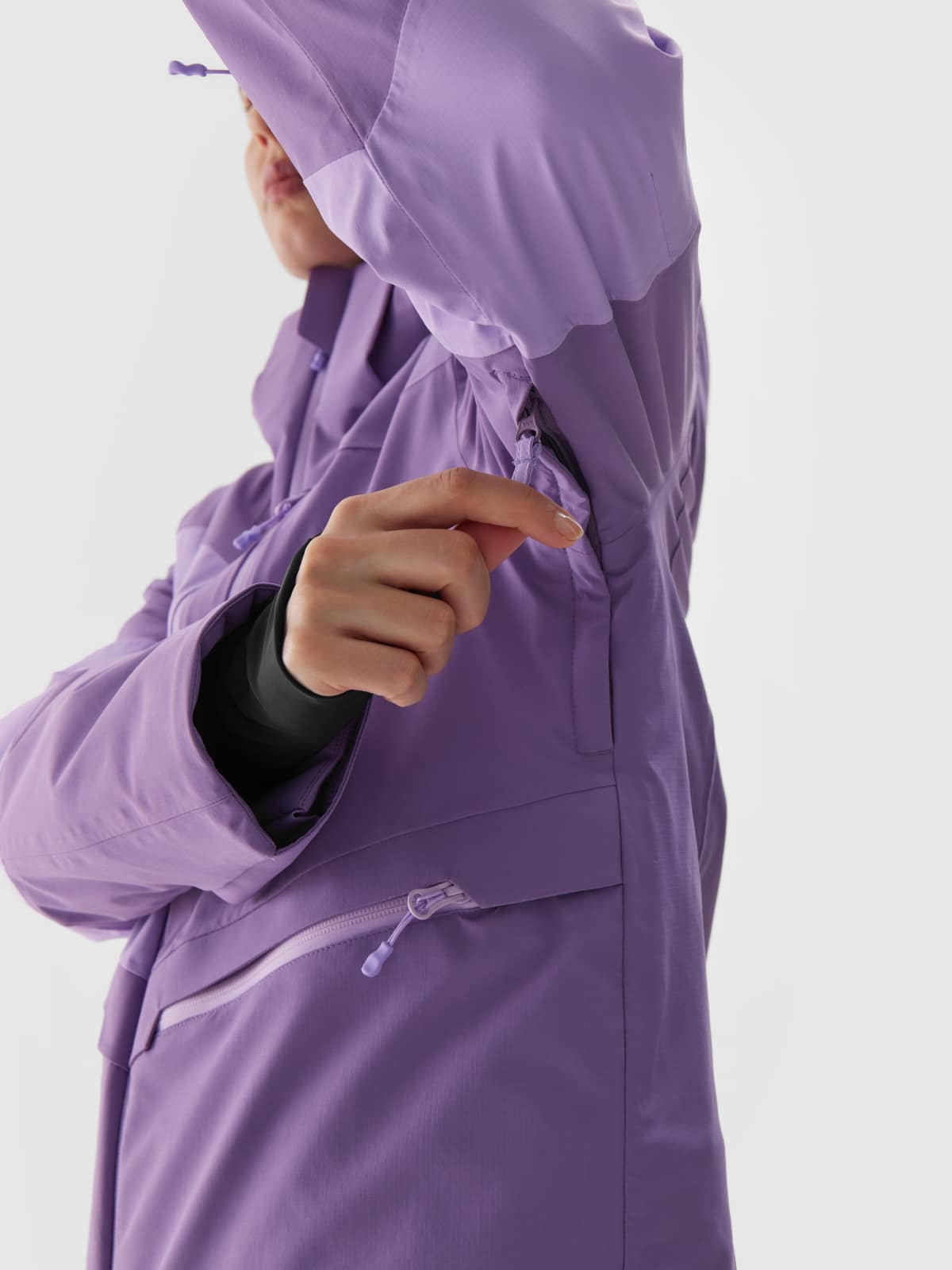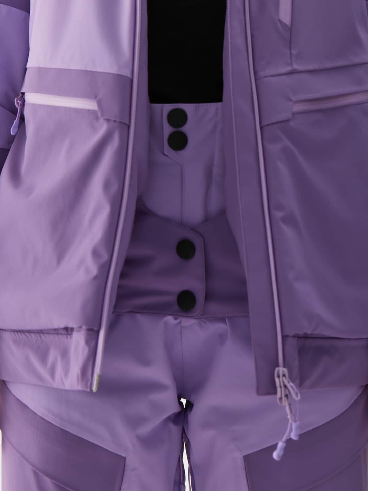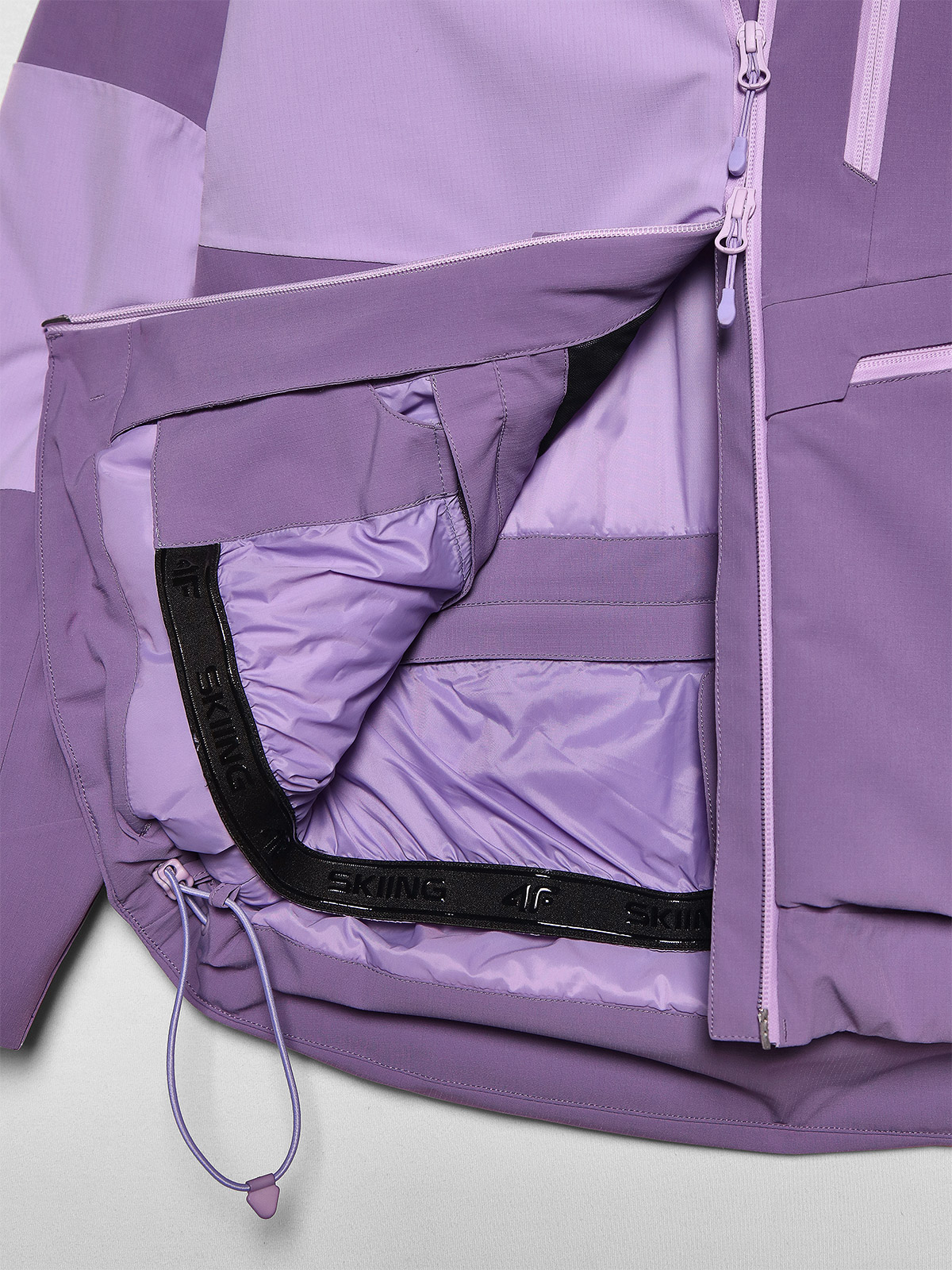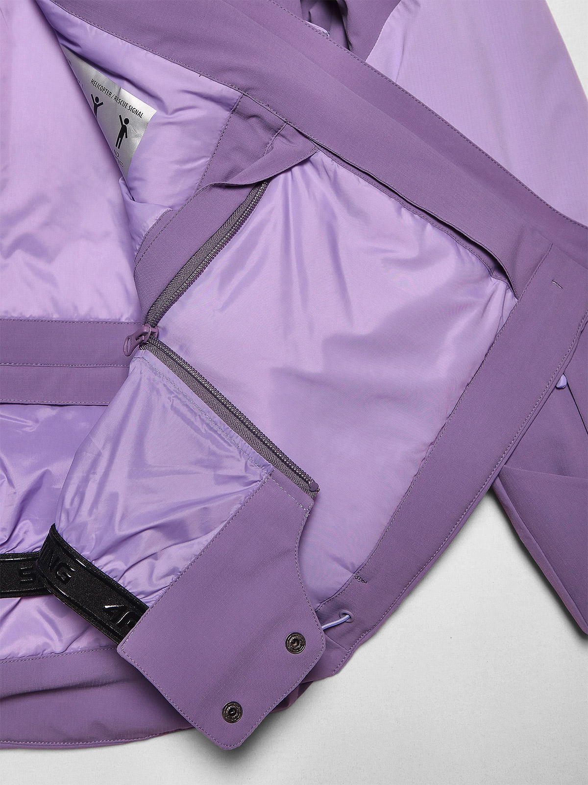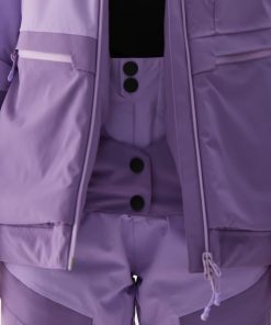 – Taschen: Zwei Taschen mit laminiertem Reißverschluss an den Seiten sowie eine zusätzliche Brusttasche bieten praktischen Stauraum. Im Inneren befindet sich eine offene Meshtasche für Skibrillen und eine Innentasche mit Reißverschluss für wichtige Gegenstände wie Schlüssel oder Smartphone. Zudem gibt es eine spezielle Skipasstasche am linken Ärmel.