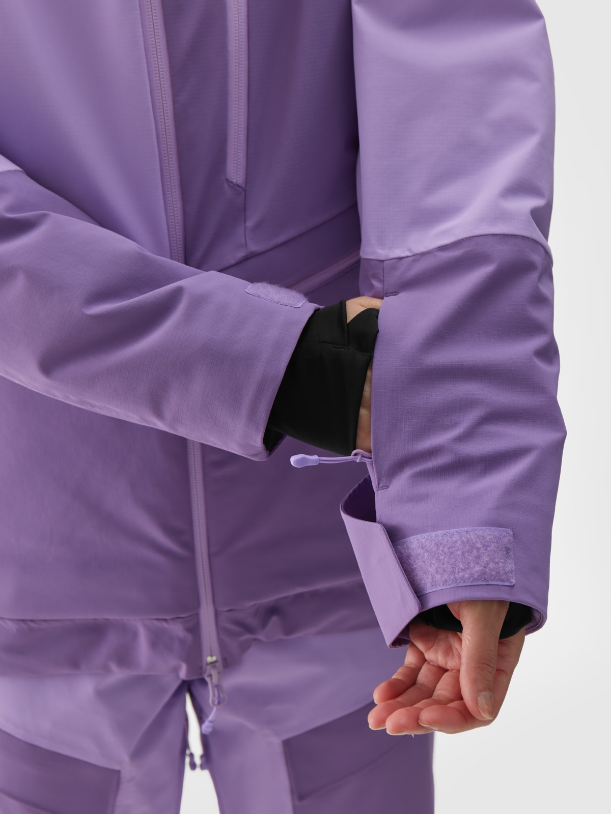 – Manschetten: Verstellbare Manschetten mit Klettverschluss und verlängerte, elastische Innenmanschetten mit Daumenlöchern bieten zusätzlichen Schutz.