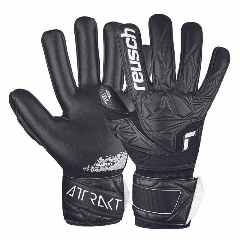 Die neue Attrakt Gold NC Fingerauflage ist mit dem Reusch Gold Latex ausgestattet. Dieser Profi-Match-Latex basiert auf der exklusiven Reusch Grip-Latex-Formel, die Naturlatex enthält und die gesamten Griffeigenschaften für kompromisslose Leistungen verbessert. Die herausnehmbare Fingerstütze bietet eine zuverlässige Vorbeugung von Fingerverletzungen. Die ergonomische Konstruktion dieses Handschuhs bietet maximalen Komfort dank des eng anliegenden Negative Cut und der elastischen Stulpe mit Vollriemen für beste Stabilität.