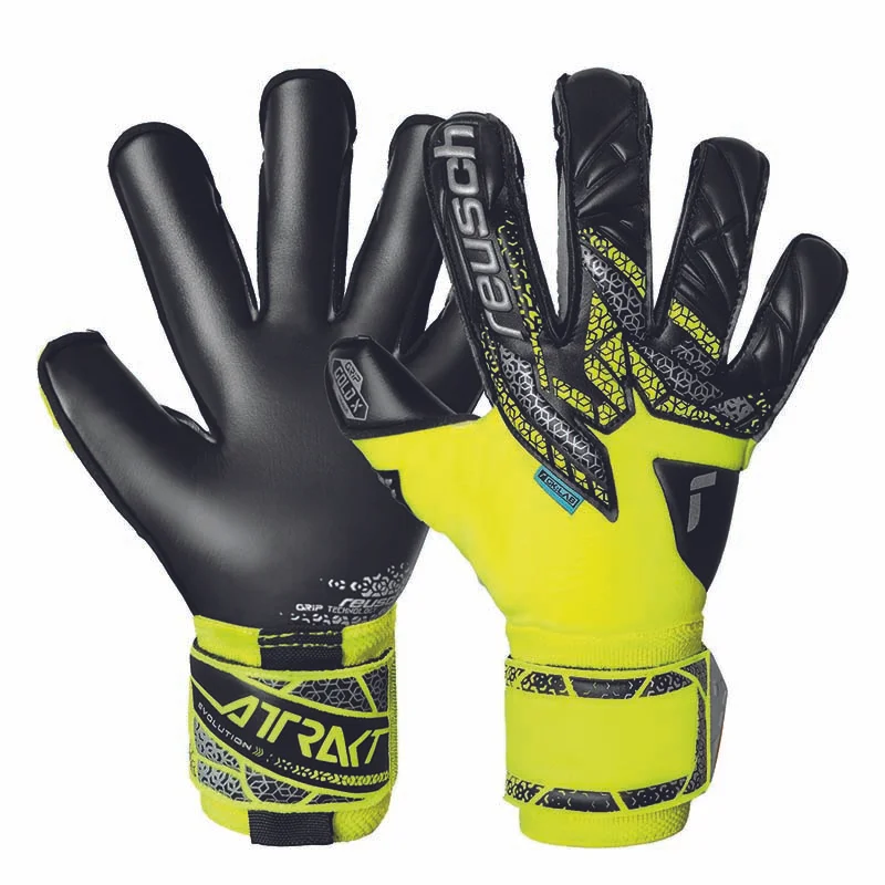 Viele professionelle Torhüter zählen auf diese Handschuhe. Ausgestattet mit der Reusch Grip Gold X Innenhand, bietet dieses Modell hervorragenden Grip. Der Evolution Cut sorgt für eine bequeme und sichere Passform, während die elastische Stulpe mit Zugschlaufe und die durchgehende Lasche mit Gummieinfassung für zuverlässigen Halt am Handgelenk sorgen. Die Oberhand aus Latex bietet hervorragende Flexibilität und Schutz, ergänzt durch das AirVentSystem für optimale Atmungsaktivität. Dominieren Sie das Feld mit dem Attrakt Gold X Evolution!