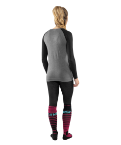 Das Tour Light Merino Longsleeve für Damen garantiert hohen Tragekomfort und dank cleverer Materialmischung ist es der perfekte Baselayer für klassische Skitouren. Das Funktionsshirt besteht aus Merinowolle und der sehr leichten und atmungsaktiven Dryarn®-Faser. Diese innovative Fasermischung ergibt ein extrem schnell trocknendes Material, das für exzellente Temperatur- und Feuchtigkeitsregulierung sorgt und dich beim Tourengehen bergauf wie bergab optimal unterstützt. Die natürlichen antibakteriellen Eigenschaften der Merinowolle verhindern die Entstehung von unangenehme Gerüchen an bewegungsintensiven Tagen. Dank der synthetischen Fasern ist der Baselayer elastischer als Funktionswäsche aus reiner Merinowolle. Dadurch besitzt das Longsleeve eine angenehm körpernahe Passform und ist zugleich robuster gegen Abnutzung. Das Shirt ist weitestgehend nahtlos und fühlt sich dadurch besonders weich und angenehm auf deiner Haut an. In Kombination mit den DYNAFIT Tour Light Merino 3/4 Tights bietet es optimale Wärme und ist die perfekte erste Schicht für Skitouren.