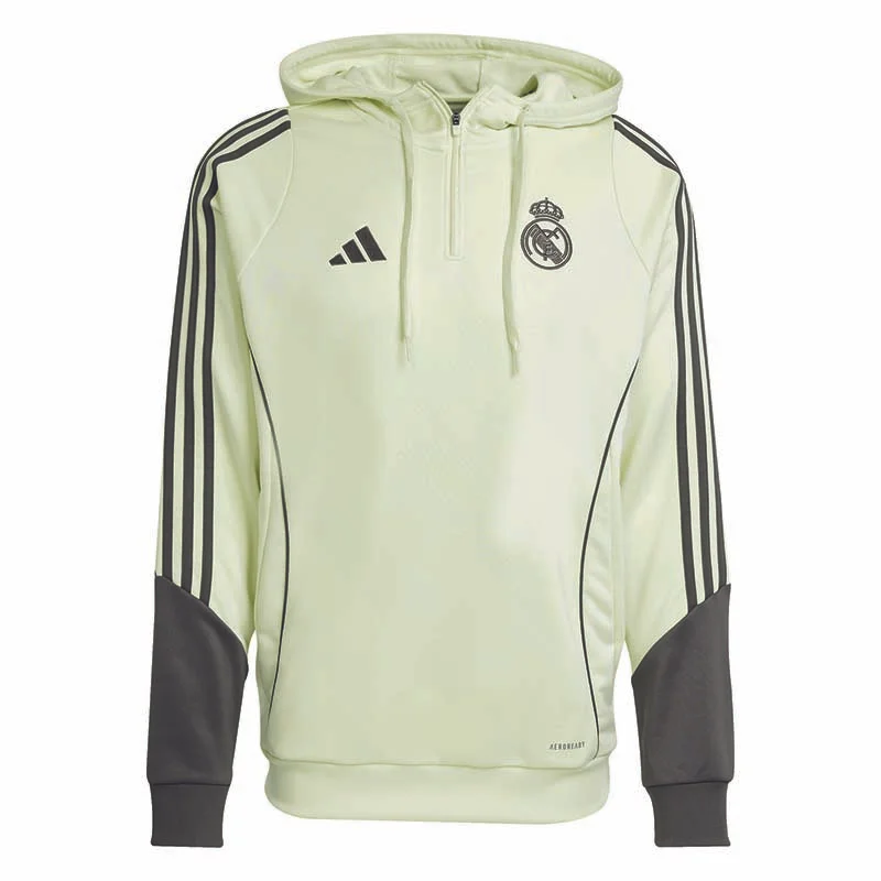Mit diesem adidas Hoodie aus der Trainingskollektion von Real Madrid zeigst du auf dem Platz, was du drauf hast. Er ist aus weichem French Terry und kommt mit feuchtigkeitsabsorbierender AEROREADY Technologie für ein angenehm frisches Tragegefühl bei intensiven Trainingssessions. Das gewebte Vereinslogo auf der Brust zeigt ausserdem deine Fanliebe.