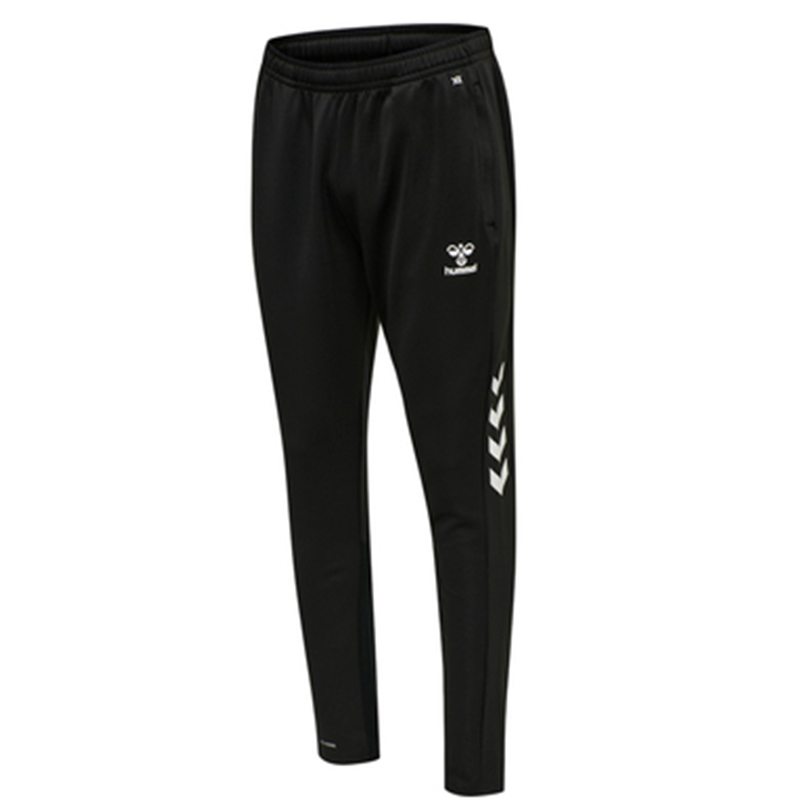 Für maximalen Komfort beim Spielen unterstützt die POLY PANTS mit Doppelstrickgewebe die Bewegungen perfekt. Auch ohne einige ikonische Akzente wäre es nicht hummel®: auf Wasserbasis gedruckte Logos und texturiertes Chevron-Band auf der Aussenseite des Unterschenkels.