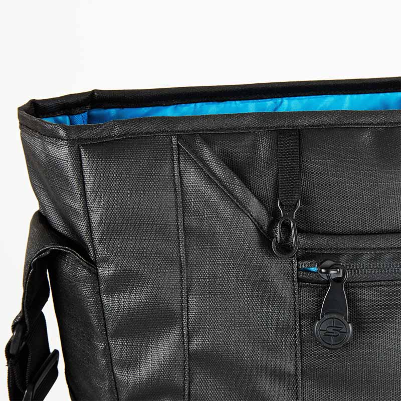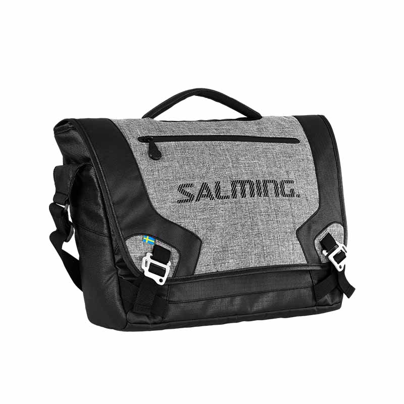 Sportlich elegante Umhängetasche mit verstellbarem Schultergurt, Fächern für Laptop und Unterlagen sowie Reißverschlussbereich auf der Klappe.