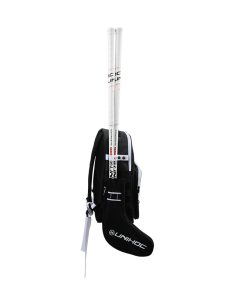 Rucksack mit ca. 30 Liter Fassungsvermögen, mit Aussentaschen für 1-2 Stöcke, 3 Bälle und Trinkflasche. Damit die Griffbänder bei Regen nicht nass werden, ist auch ein Regenschutz für die Schäfte im Rucksack integriert.